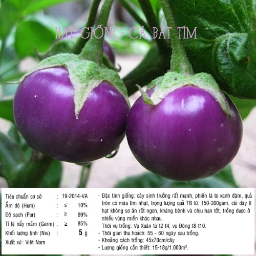 Tại shop cây và hoa chúng tôi có cung cấp giống cà bát tím đạt đầy đủ tiêu chuẩn, có giấy chứng nhận về chất lượng sản phẩm. Một số thông số về hạt giống cà bát tím