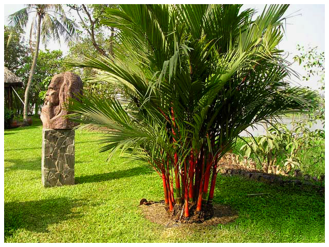 + Thân cây hình vột cùng họ với dừa, thân có vảy, lá mọc đều từ thân tập trung phía trên ngọn, lá có hình dáng gần giống như lá cau có màu xanh, đầu lá có gai.