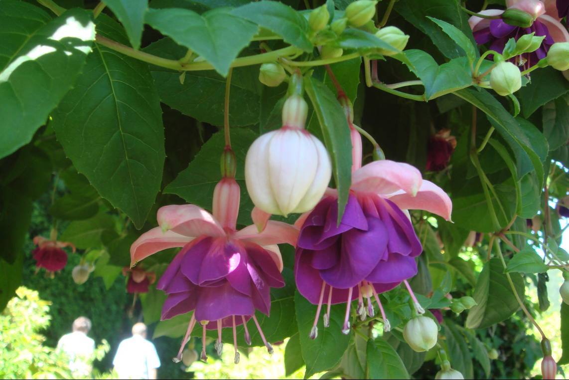 Bên cạch đó có các loài hoa khác là Fuchsia var. Roi des Balcons, đặc tính cành hoa dài, đơm nhiều bông to, màu trắng ở giữa màu đỏ đậm nhìn giống như một treo trên cao.