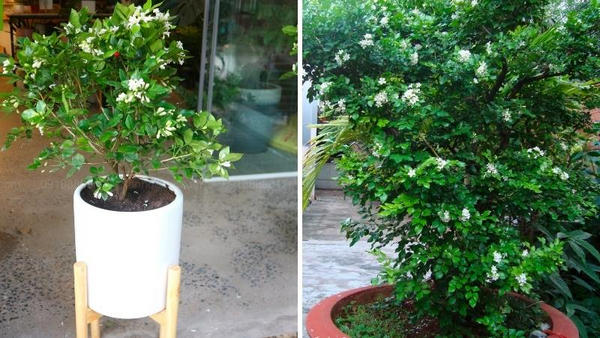 – Hoa nguyệt quế có mùi thơm thoang thoảng và màu trắng tinh khôi. Hoa có 5 cánh, thông thường hoa mọc ở kẽ lá và đầu ngọn cành.