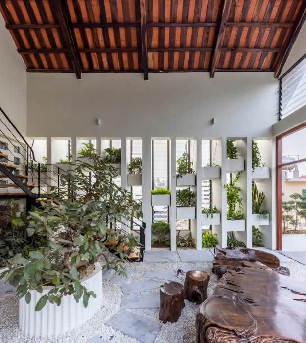 Tất cả tạo nên một không gian “nửa trong – nửa ngoài”, giúp gia chủ luôn cảm nhận được sự hiện diện của thiên nhiên.